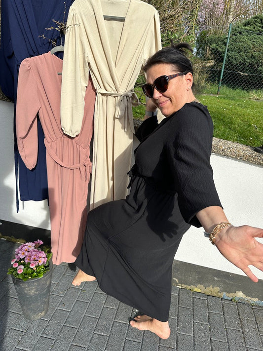 Elegant Lace-Up Maxi Dress with Flowing Sleeves