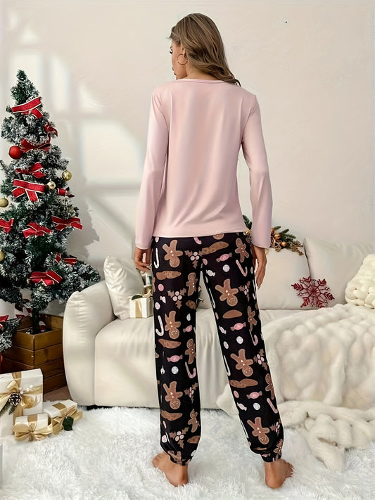 Women's Long Sleeve Pajama Set – Crew Neck Top and Printed Pants