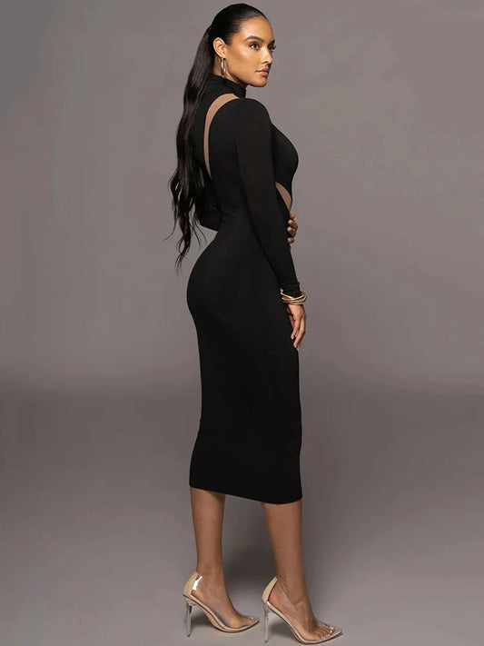 Chic Black Ribbed Long-Sleeve Maxi Dress
