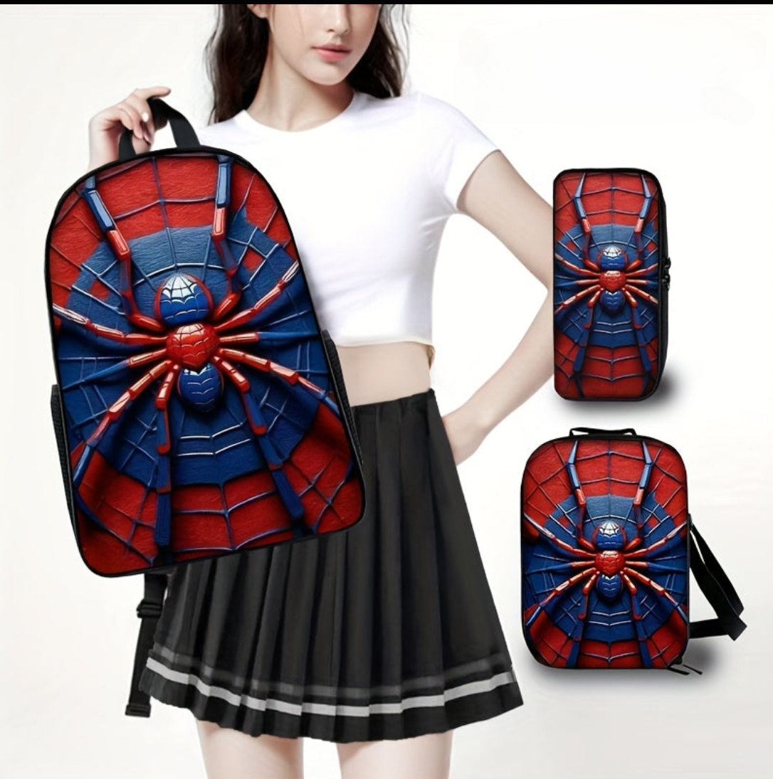 This web-themed backpack set blends standout design with functional storage, making it ideal for everyday carrying needs.
