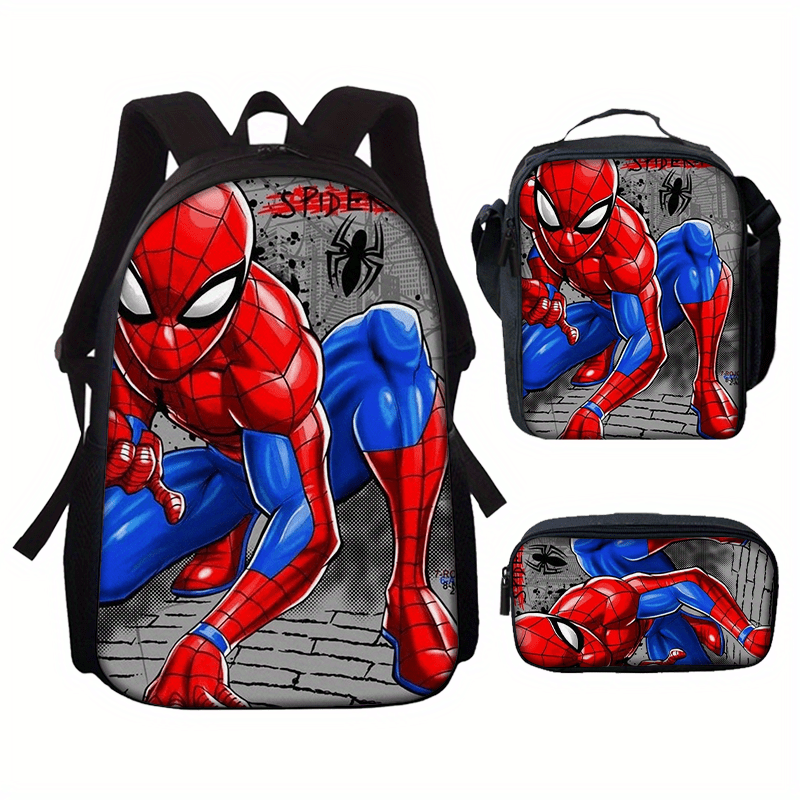 This cartoon-themed 3-piece backpack set is designed for school, casual outings, or everyday use. Featuring a bold graphic design, this set includes a main backpack, a smaller lunch-style bag, and a pencil case for organized storage of books and personal items.