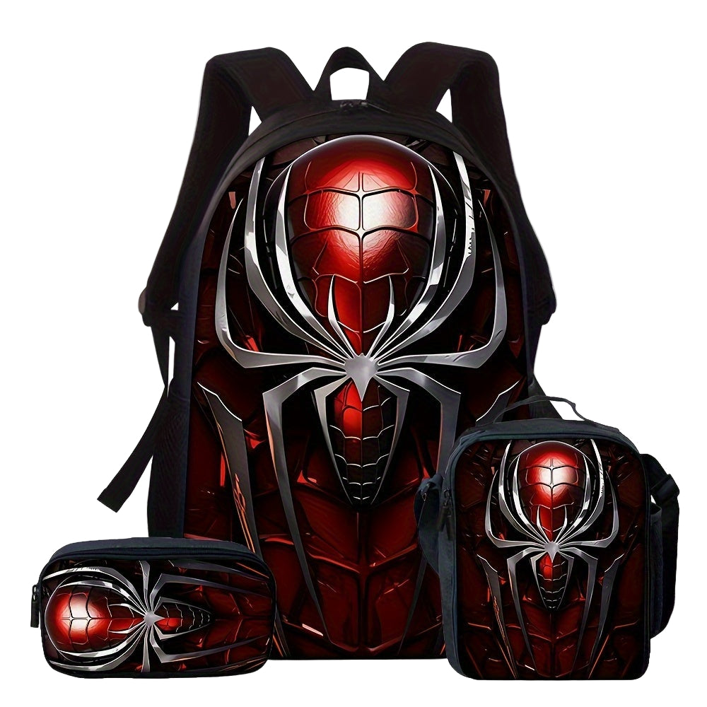 3-Piece Backpack Set with Red Spider Design