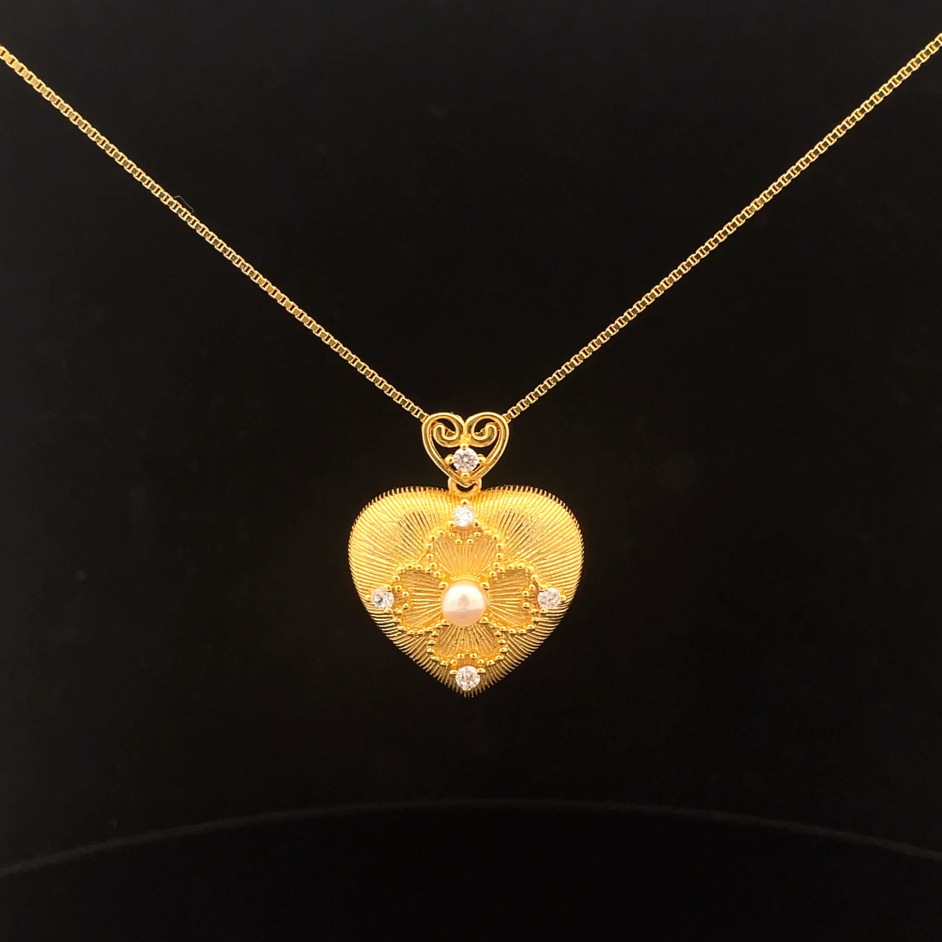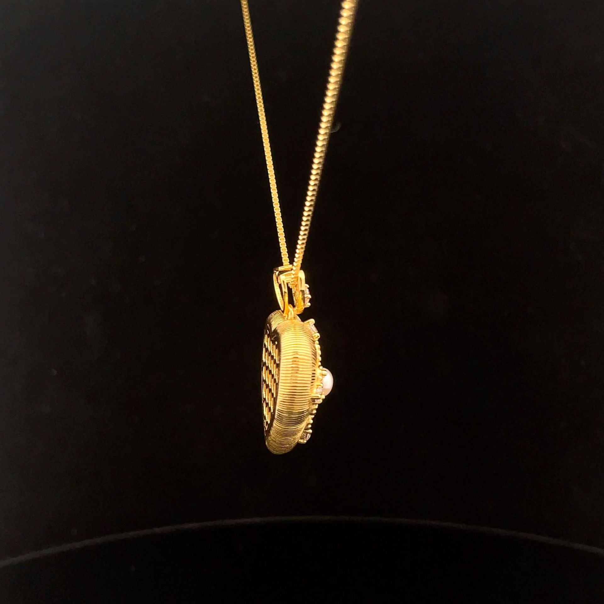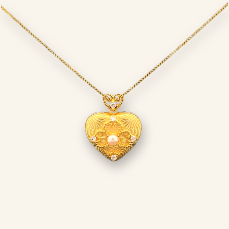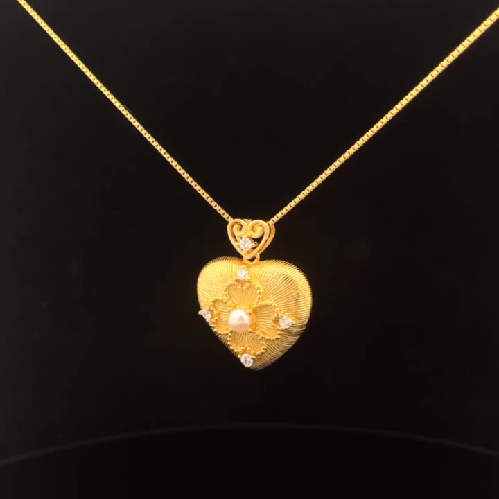 - Pendant Design: Heart-shaped with intricate patterns and inlaid shell bead