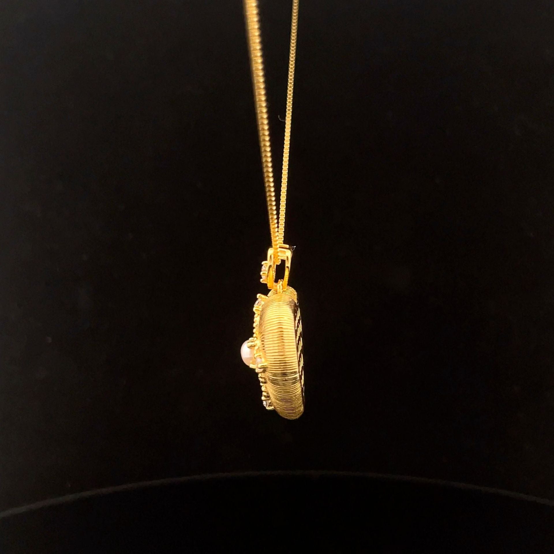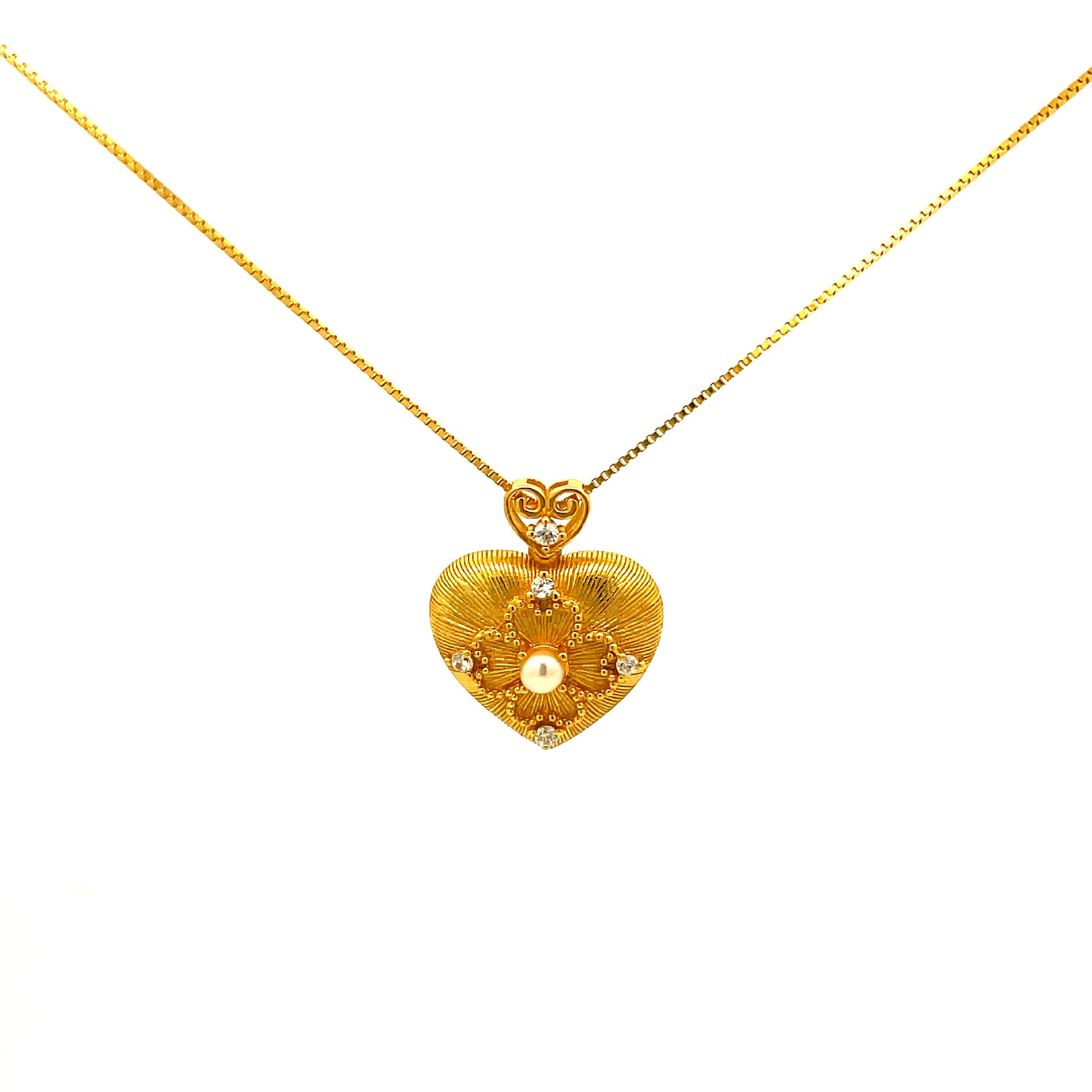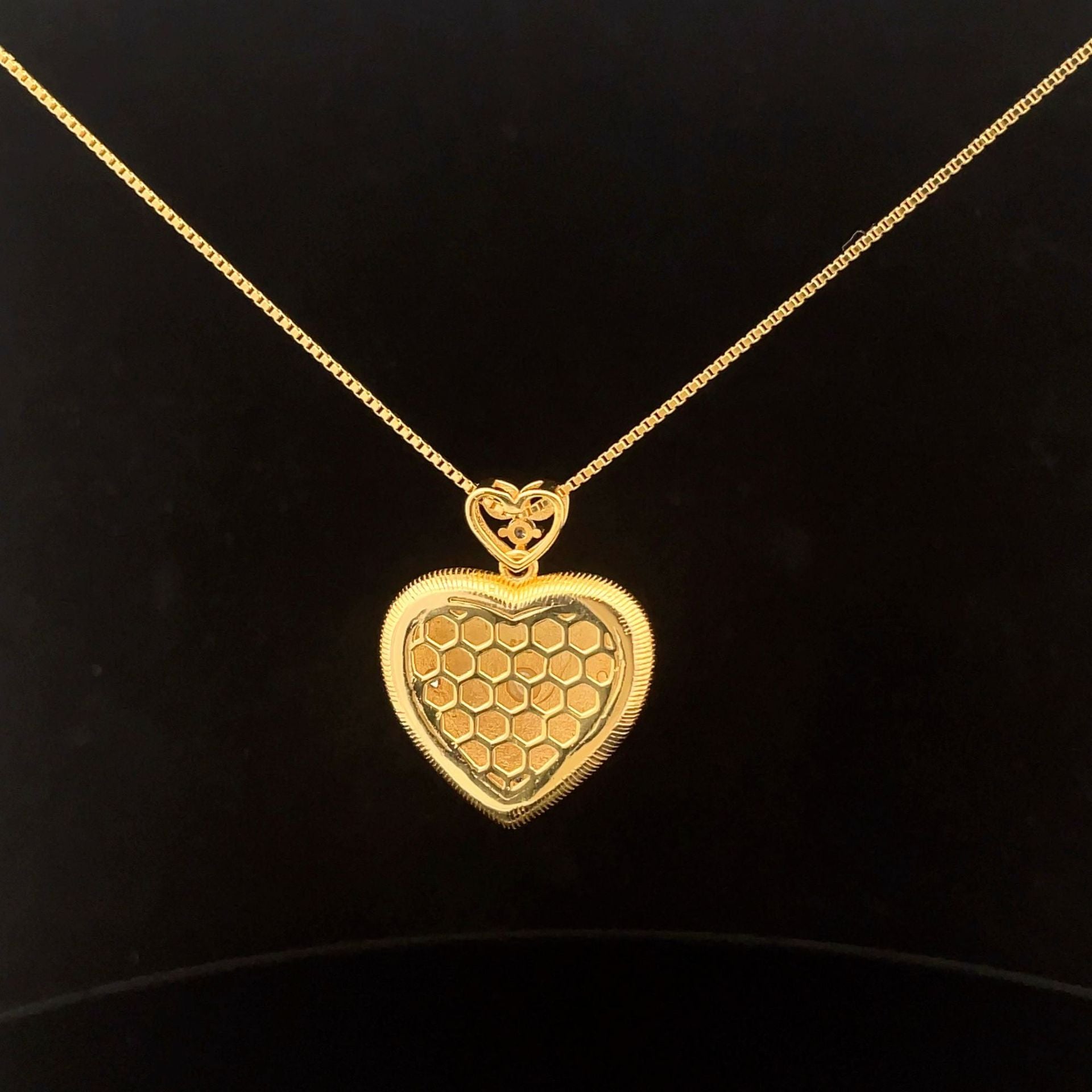 - Pendant Design: Heart-shaped with intricate patterns and inlaid shell bead