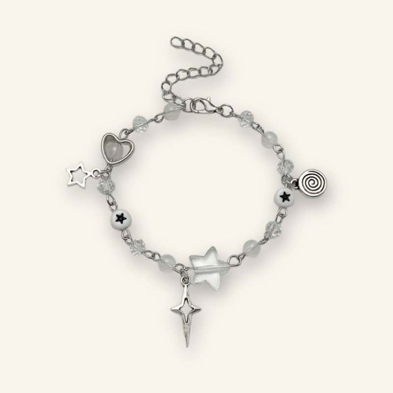 - Design: Beaded bracelet featuring heart, star, and swirl-shaped charms