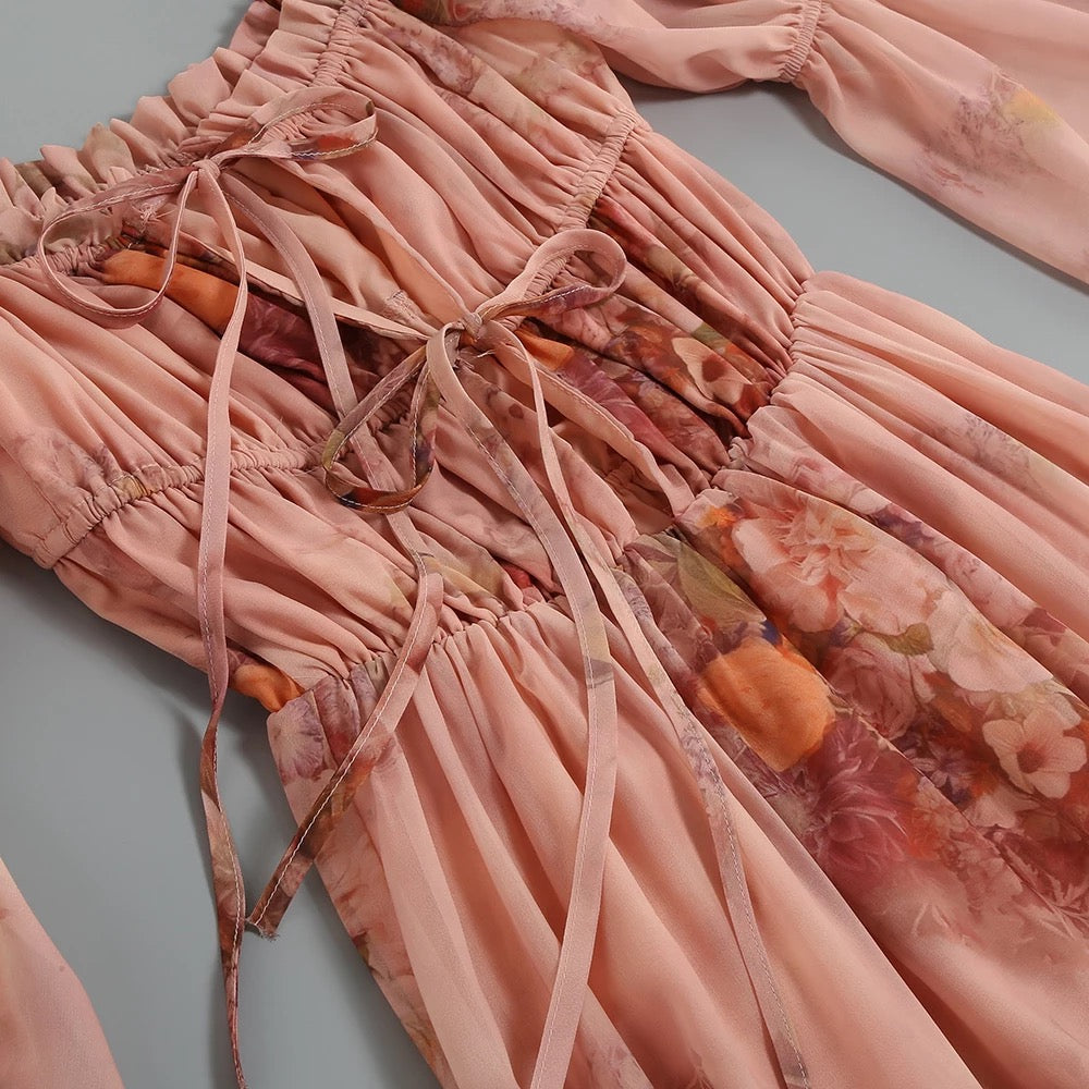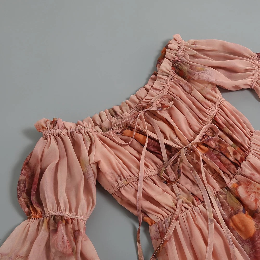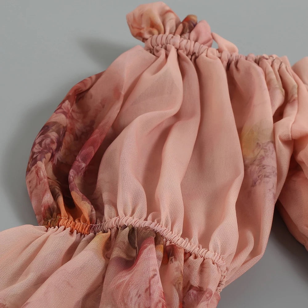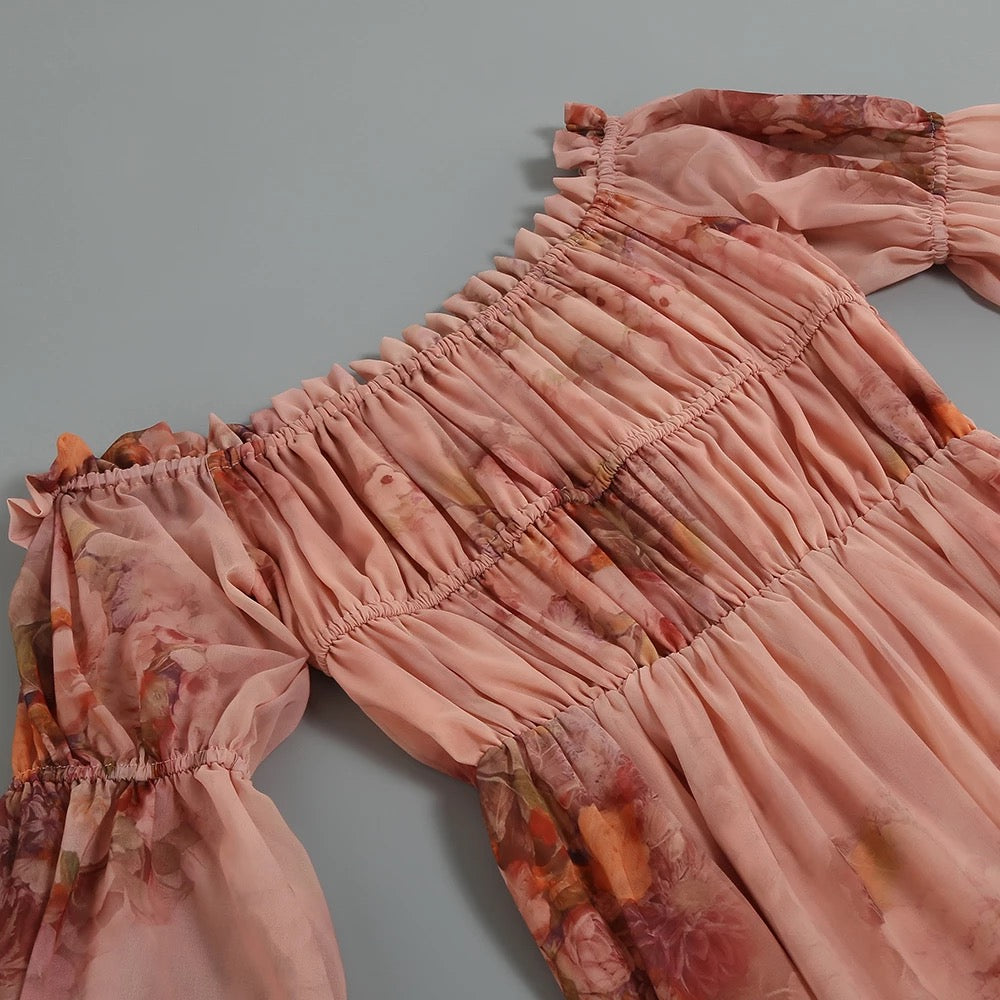 Elegant Off-the-Shoulder Floral Chiffon Dress