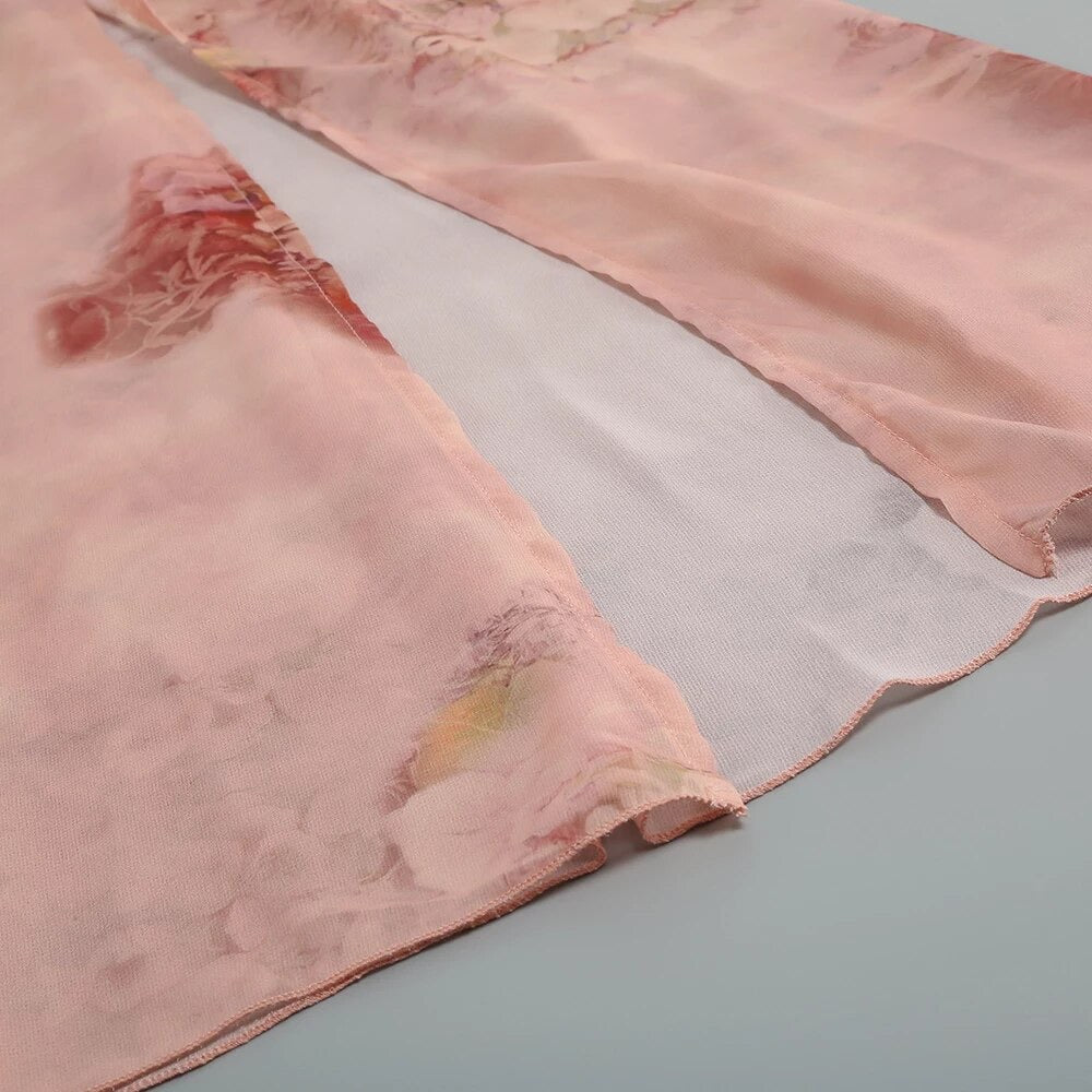 - Design: Off-the-shoulder style with long sleeves and a chic slit, available in pink and multicolored floral patterns.