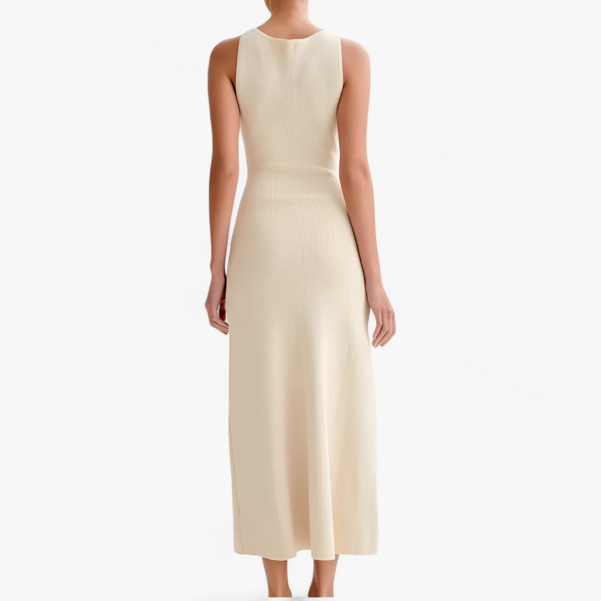 Embrace a blend of sophistication and comfort with this stunning maxi dress. Featuring a timeless silhouette, this piece is designed to make you feel confident and chic, whether you're attending a garden party or enjoying a casual day out. The elegant round neckline and sleeveless design offer a flattering fit that highlights your natural beauty, while the golden button accents add a noble touch that sets this dress apart from the rest.