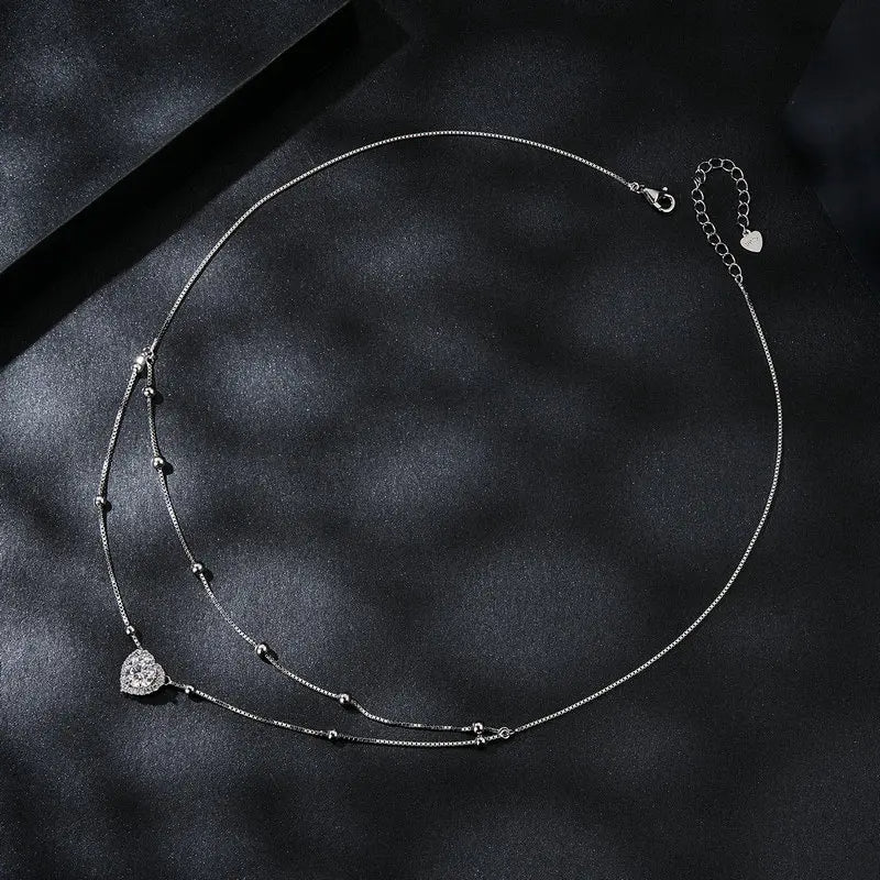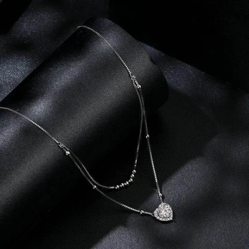 This necklace is the perfect choice for any occasion, from formal events to daily wear. Its double-layer design adds depth and texture, while the sparkling heart pendant serves as a timeless symbol of love and elegance.
