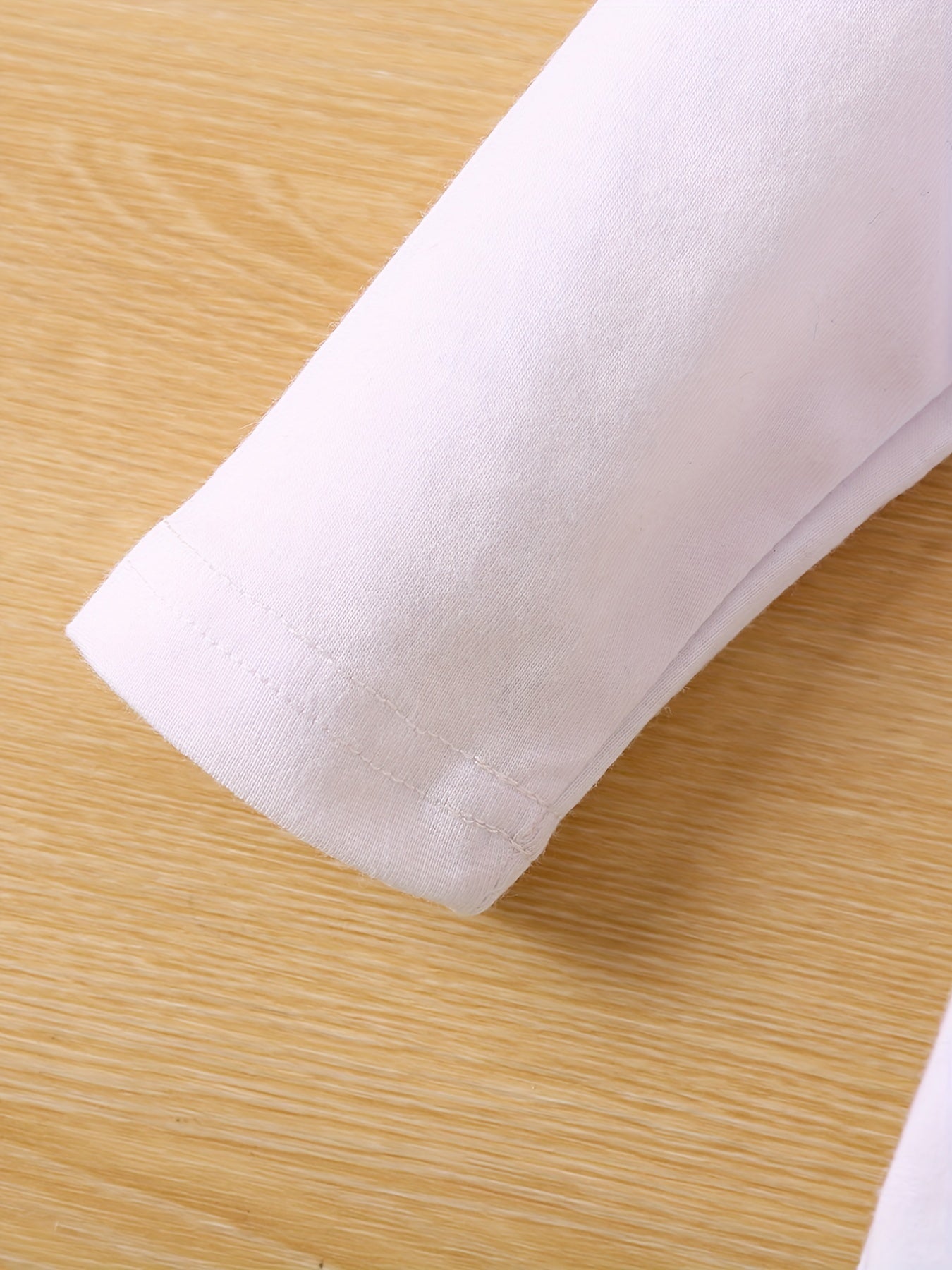 - Set Includes: Long-sleeve bodysuit and fuzzy suspender-style pants