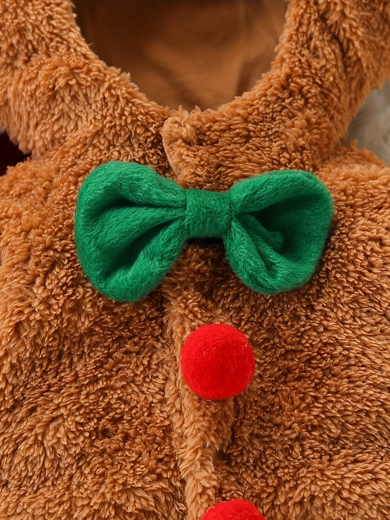 This soft baby jumpsuit is designed for cooler weather and features a hood for added warmth. The jumpsuit comes in a cozy fabric with a playful look, including festive details such as pom-poms and a decorative bow. It’s perfect for everyday wear during fall and winter seasons.