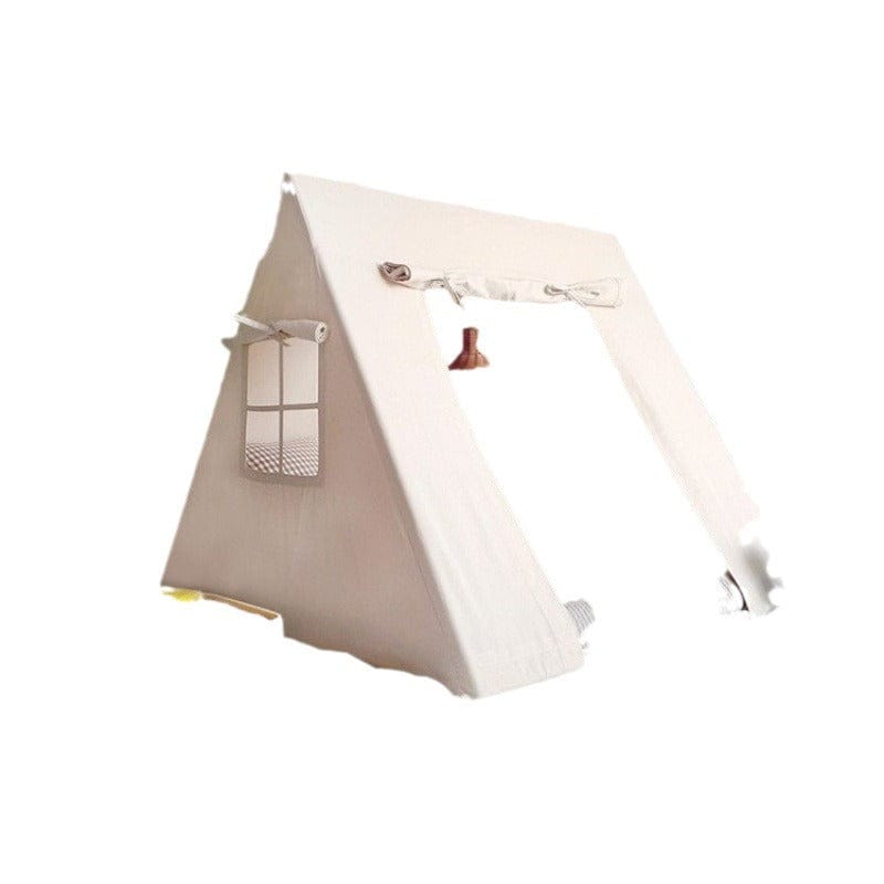 Create a cozy play space for children with this indoor tent, featuring a stable wooden frame, soft cushioned mat, and decorative string lights. Its neutral color palette and minimalist style make it a versatile addition to bedrooms, playrooms, or living areas.