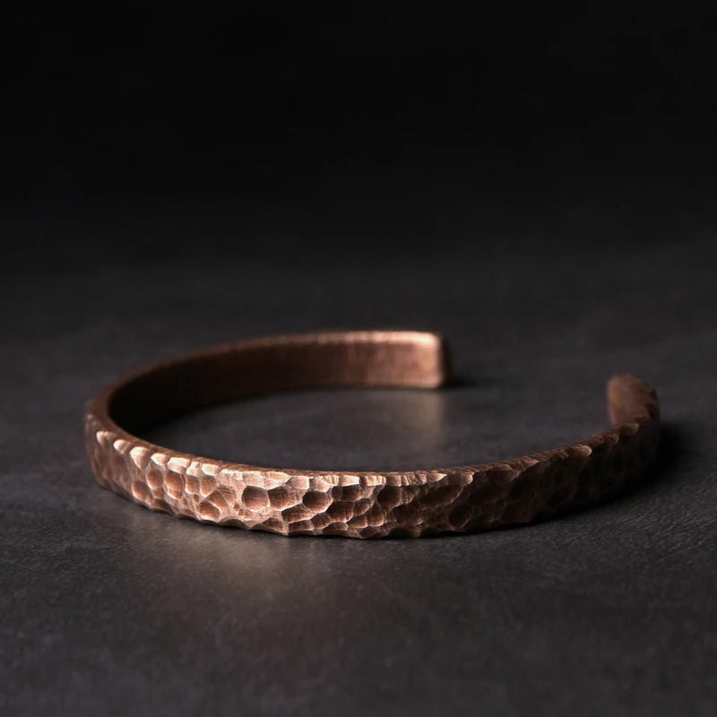 Add a touch of rugged sophistication to your style with this Rustic Copper Metal Bracelet. Carefully handcrafted, its hammered texture and vintage-inspired design make it a bold statement piece suitable for any occasion.