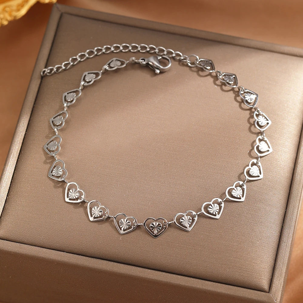 Add a touch of understated elegance with this finely crafted Stainless Steel Golden Skeleton Heart Bracelet. Designed with an intricate hollow heart pattern, this piece is a graceful tribute to timeless love and sophistication.